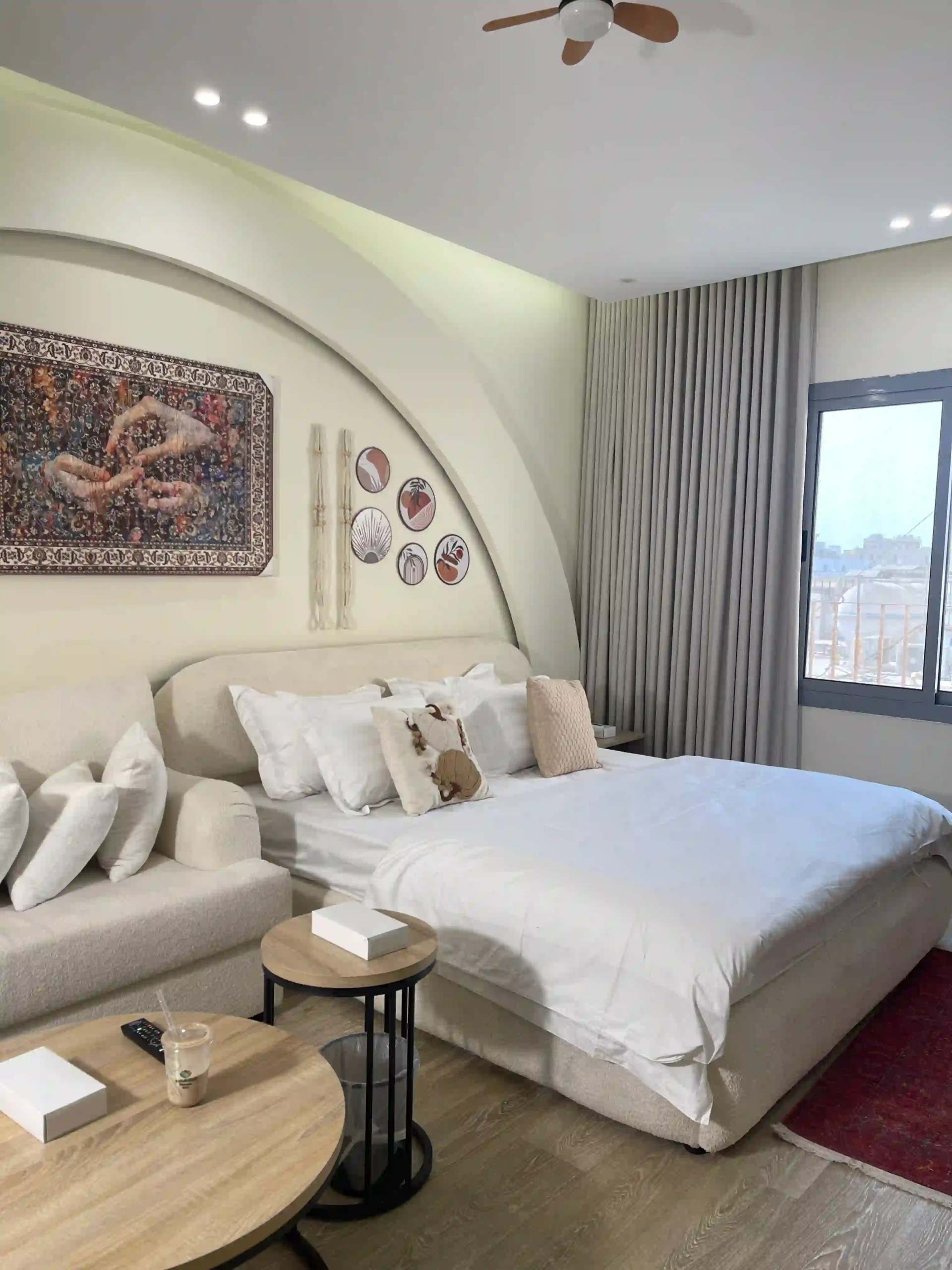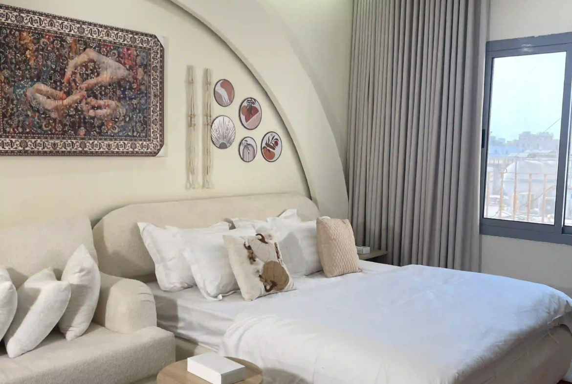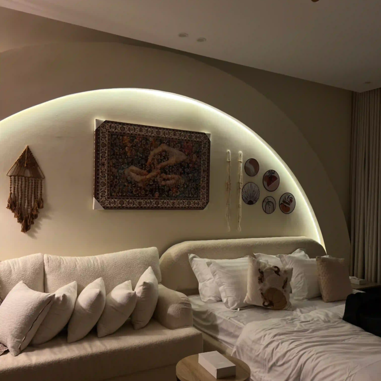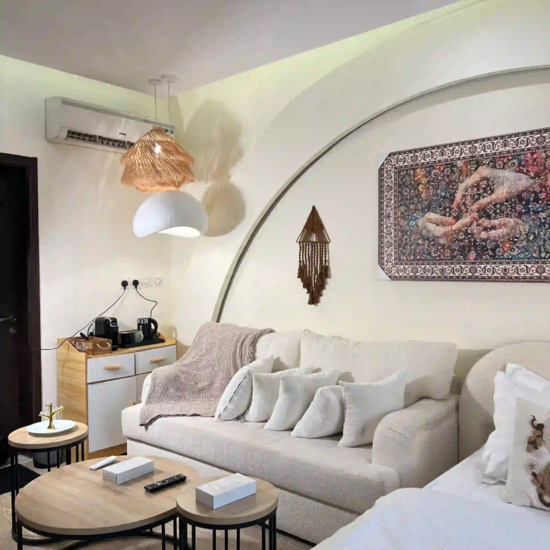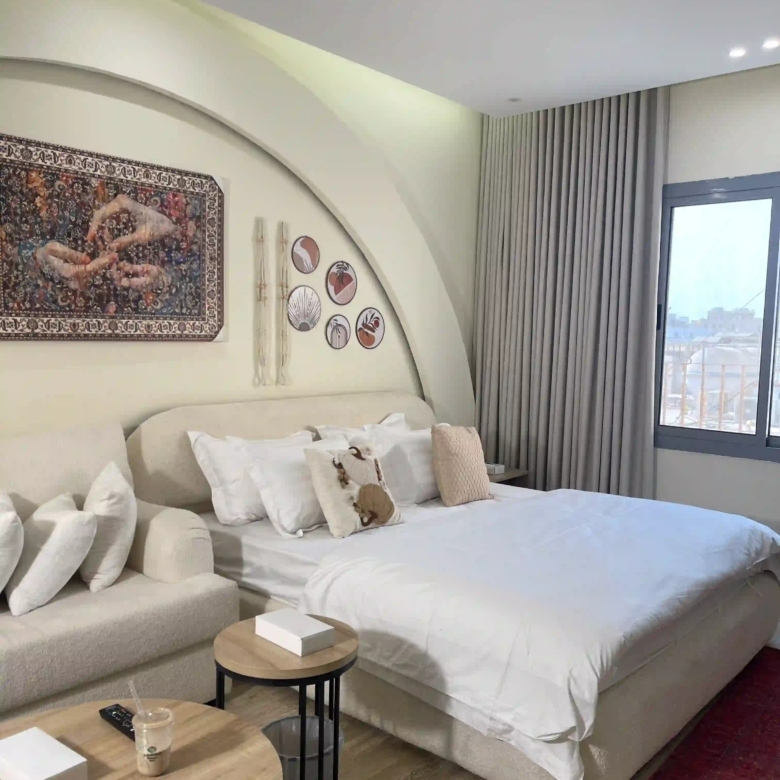 استوديو بوهيمي بتصميم داخلي فريد يجمع بين الأناقة الراقية والدفء، لمحبي التفاصيل والأجواء الهادئة.