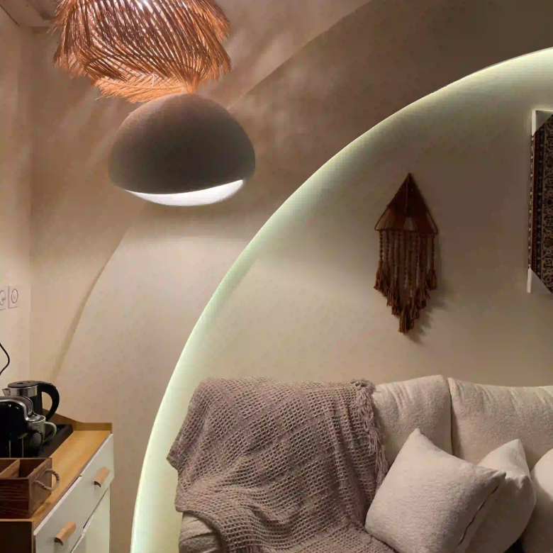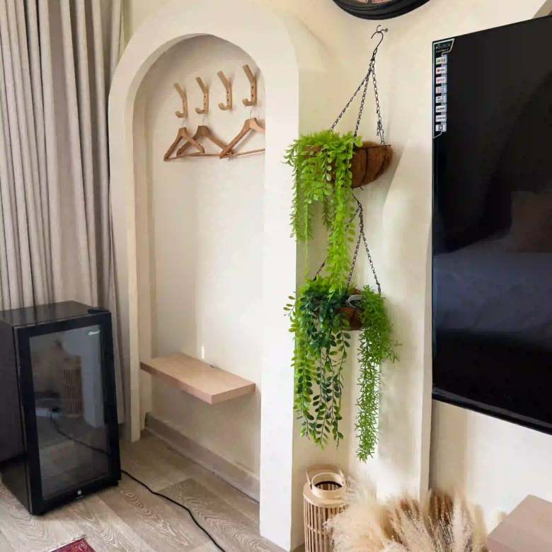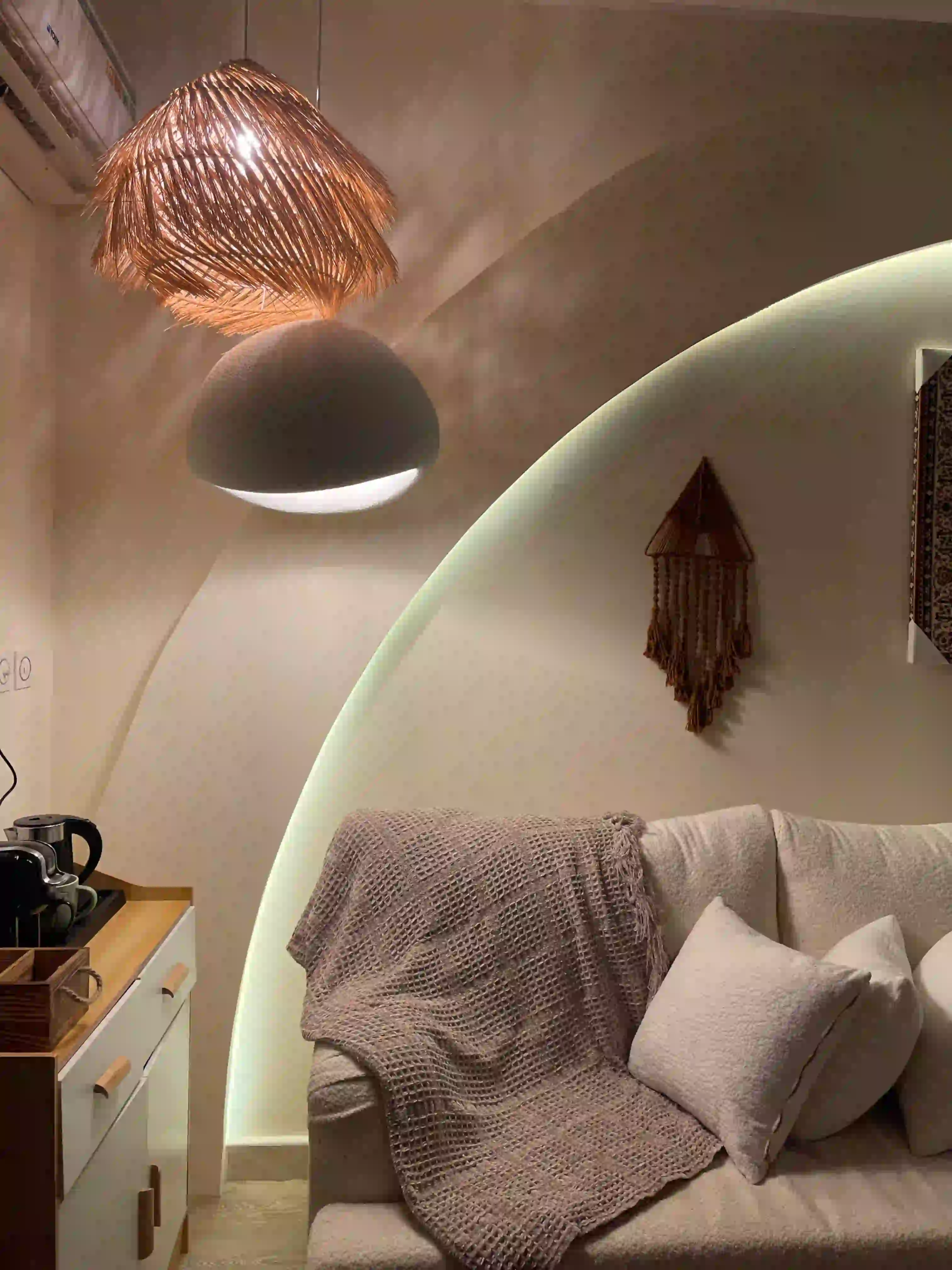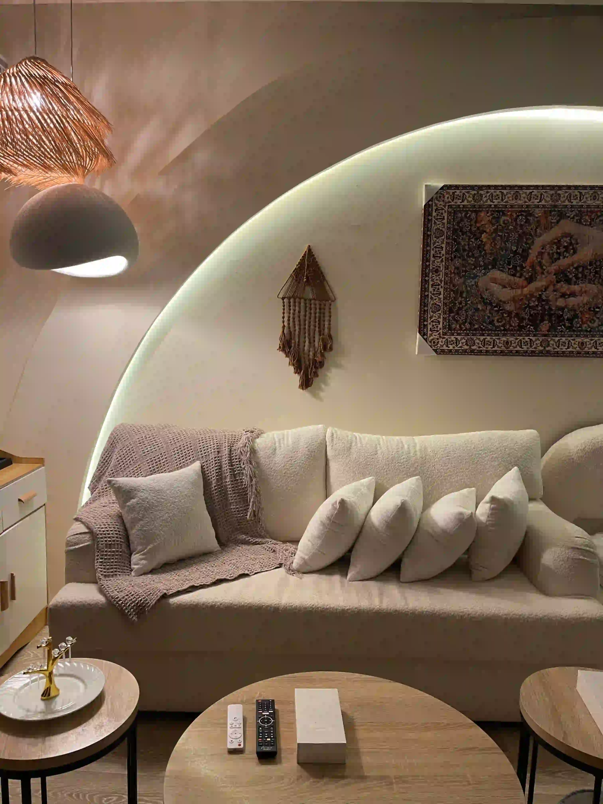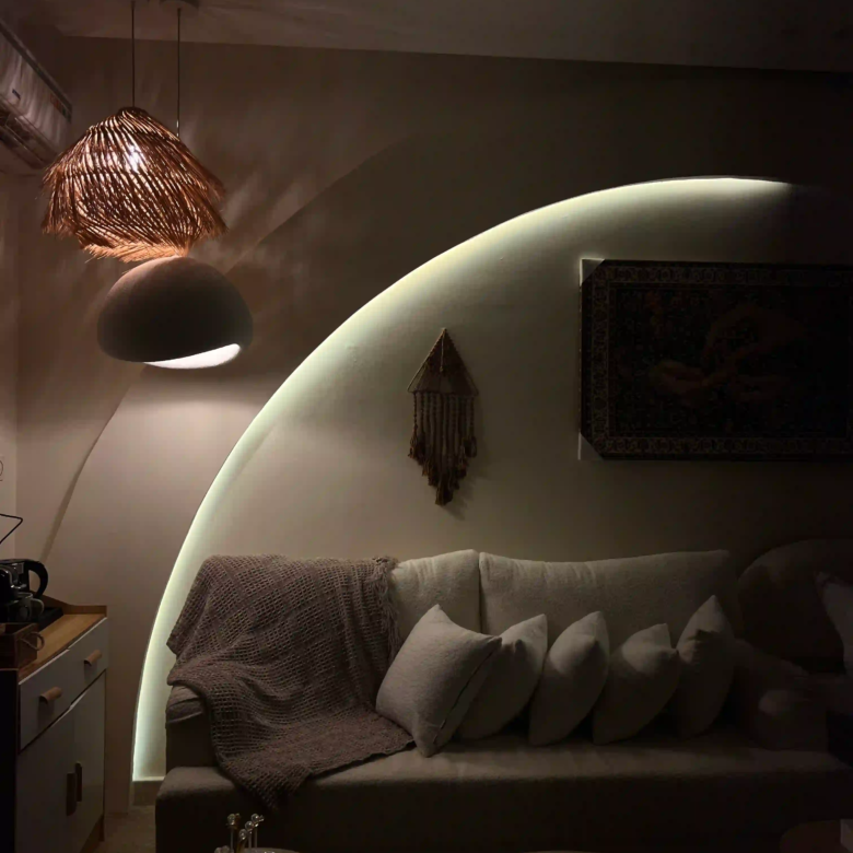 استوديو بوهيمي بتصميم داخلي فريد يجمع بين الأناقة الراقية والدفء، لمحبي التفاصيل والأجواء الهادئة.