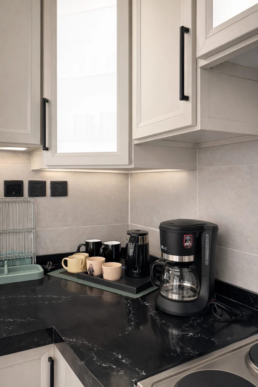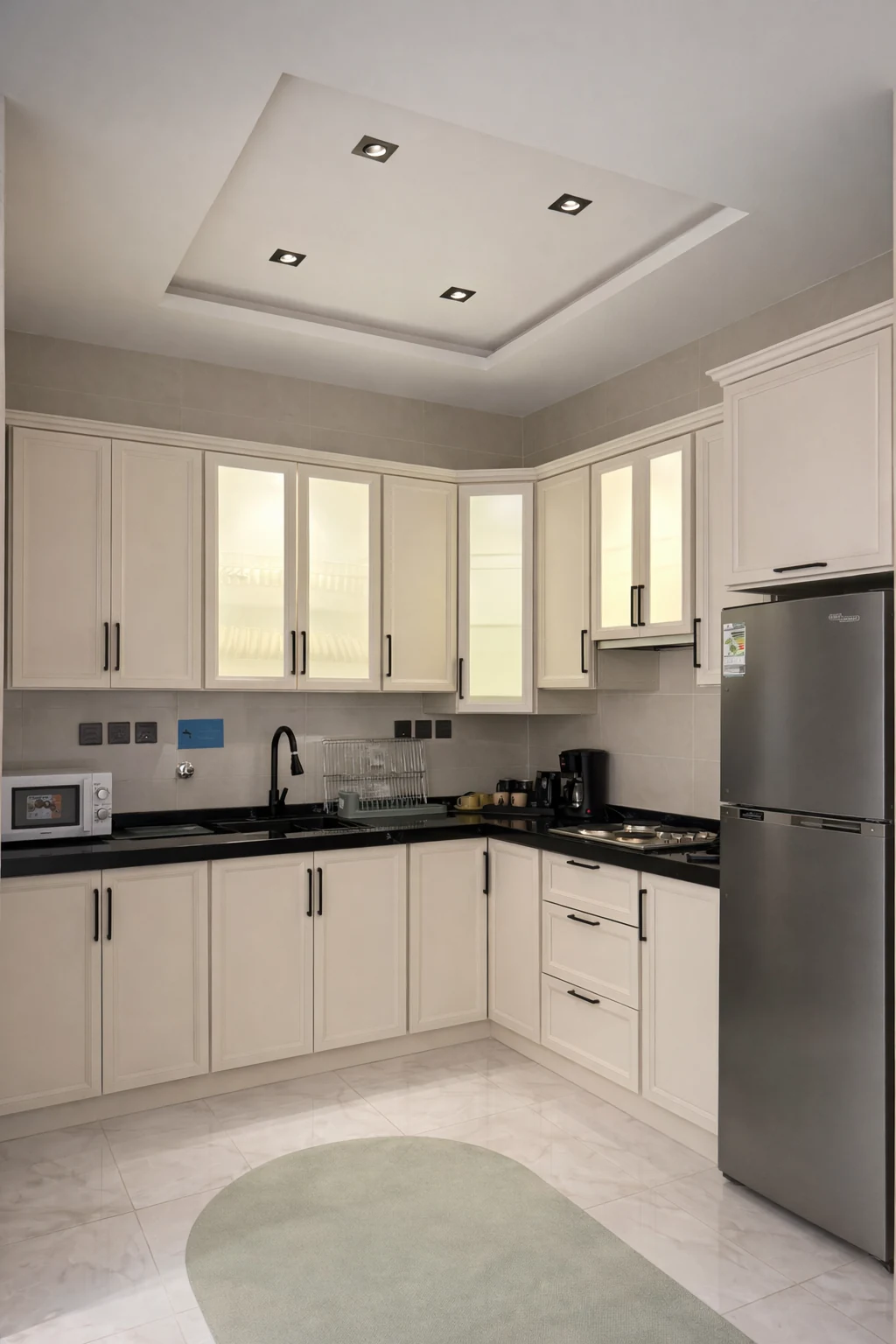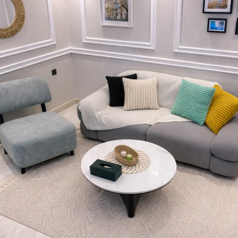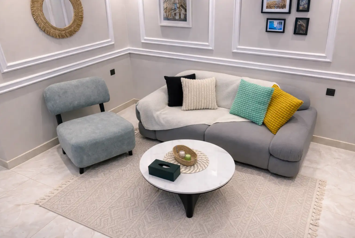 الشقة مجهزة بكل الاحتياجات الأساسية لضمان إقامة مريحة، مع اهتمام بالتفاصيل التي تجمع بين الأناقة والعملية.