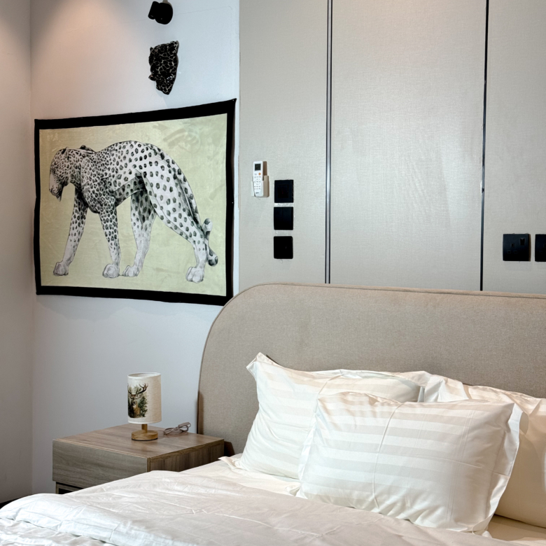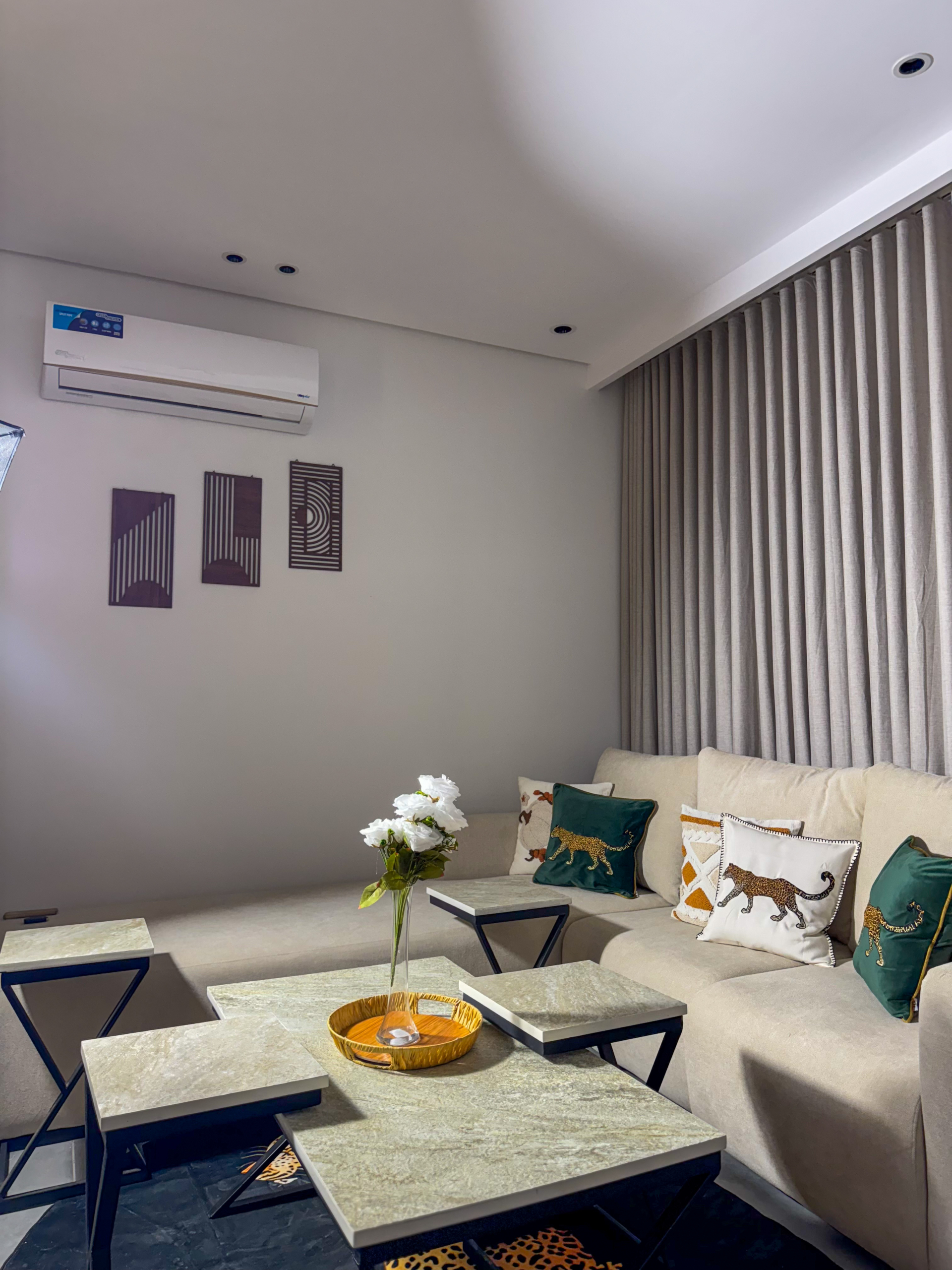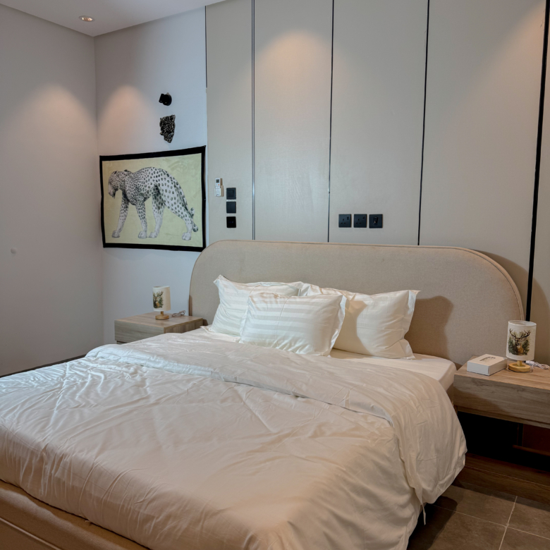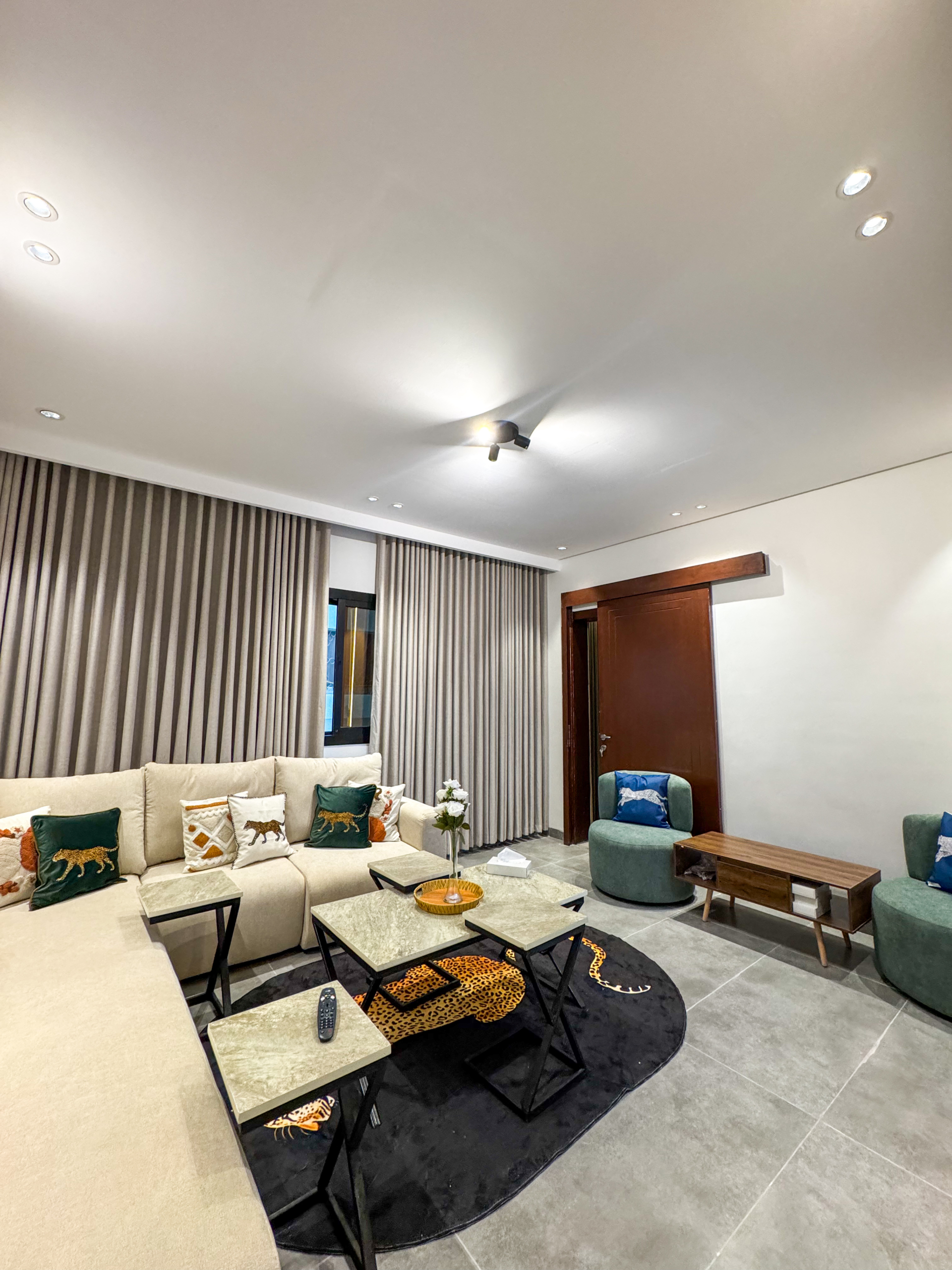 استمتع بإقامة مختلفة في شقة أنيقة بتصميم نمري عصري يجمع بين الجرأة والفخامة. الأثاث المختار بعناية مع الخداديات النمرية يضفي طابعًا دافئًا ومميزًا، ليمنحك إحساسًا بالراحة والخصوصية مع لمسة فنية فريدة.