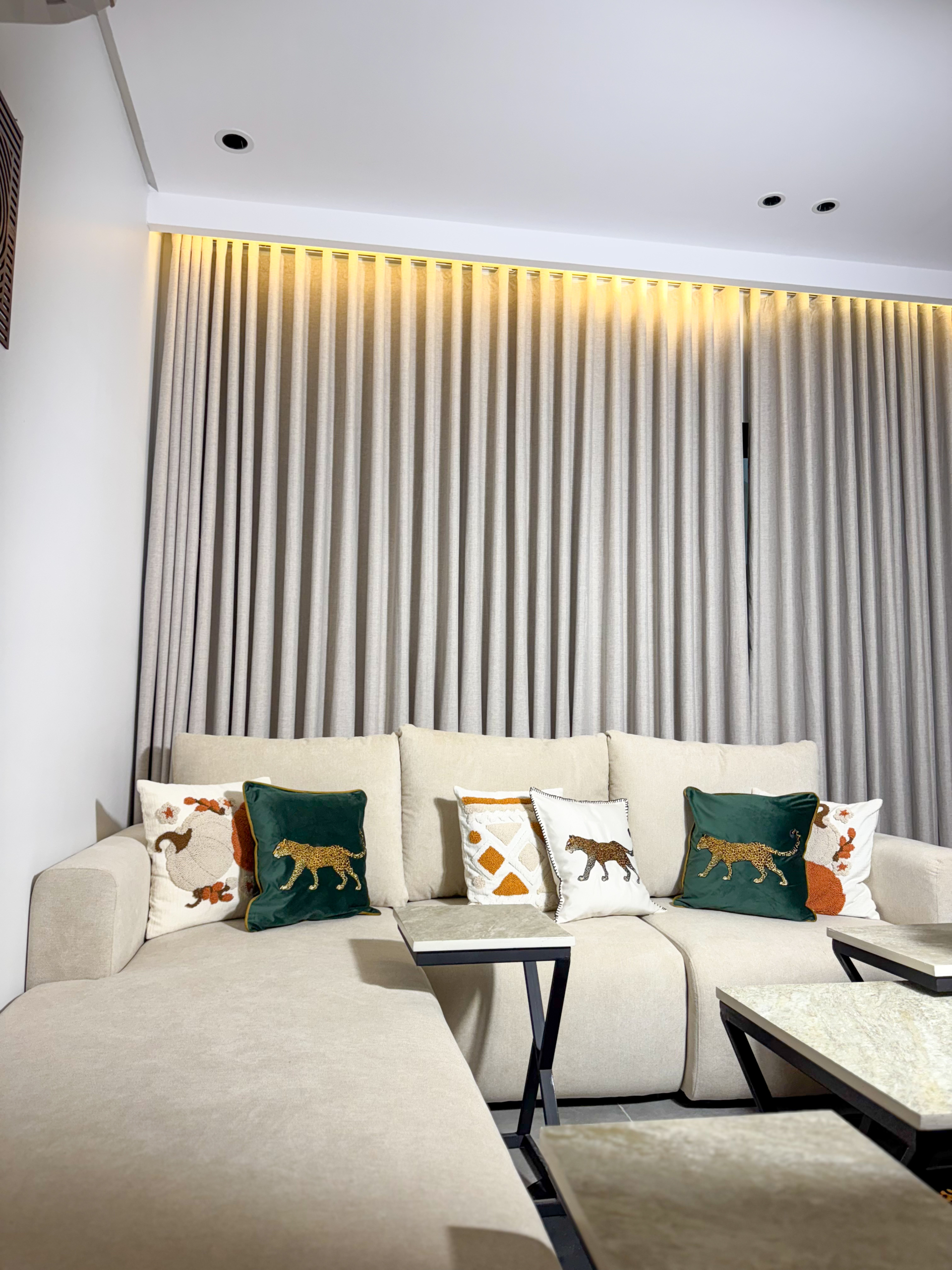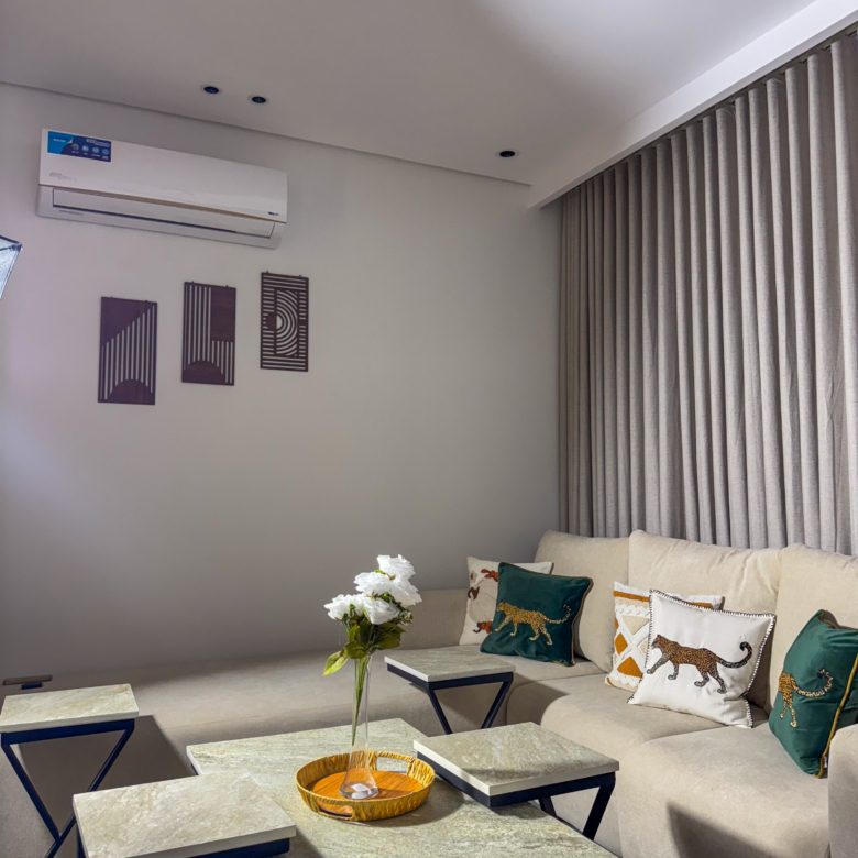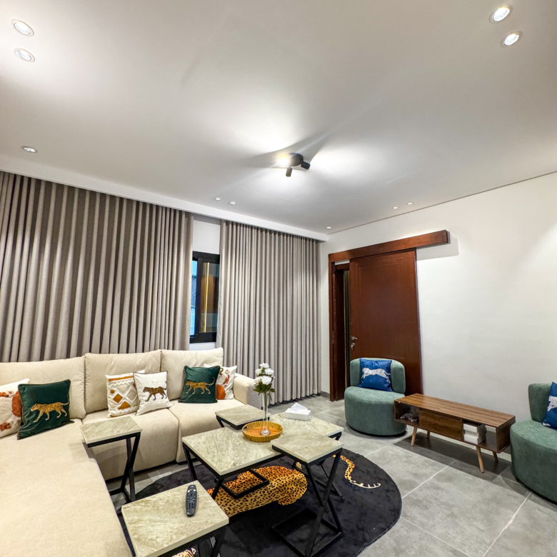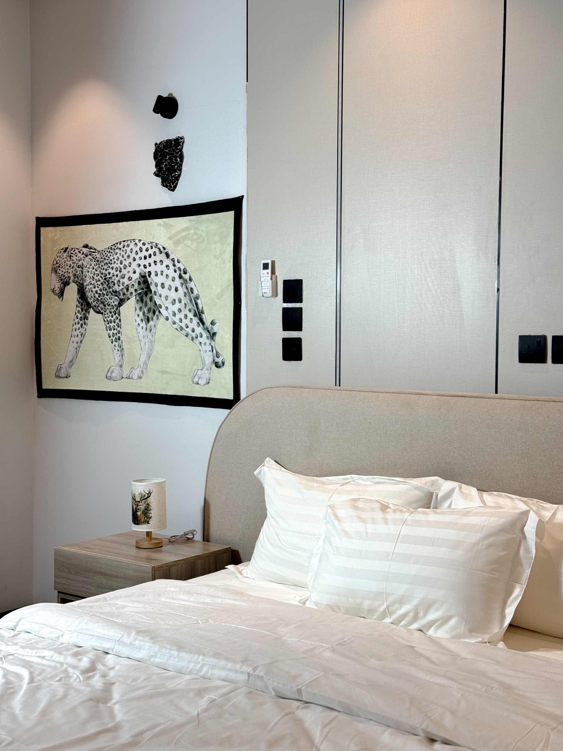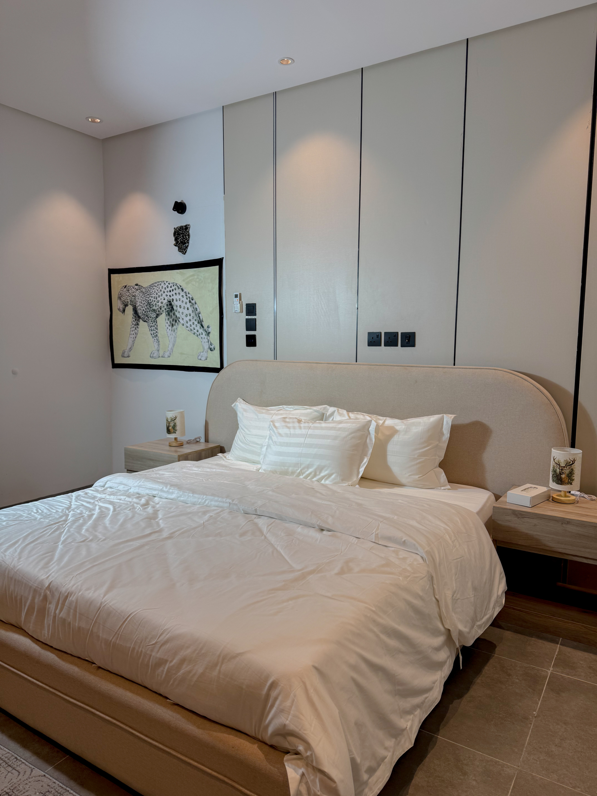 استمتع بإقامة مختلفة في شقة أنيقة بتصميم نمري عصري يجمع بين الجرأة والفخامة. الأثاث المختار بعناية مع الخداديات النمرية يضفي طابعًا دافئًا ومميزًا، ليمنحك إحساسًا بالراحة والخصوصية مع لمسة فنية فريدة.