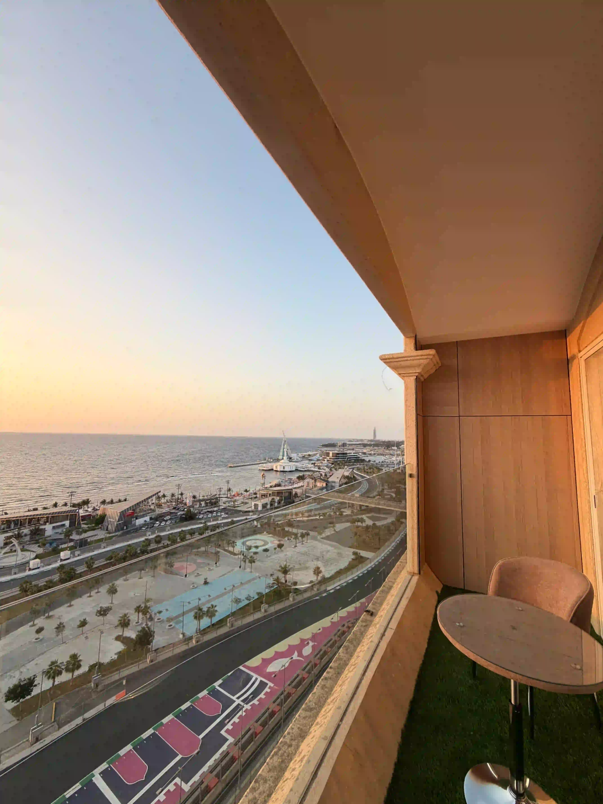 شقة فاخرة في برج فندقي راقٍ تقع في قلب كورنيش جدة، بإطلالة بانورامية ساحرة على حلبة الفورمولا والبروميناد، حيث تمتزج أجواء البحر بالحيوية العصرية للواجهة البحرية.