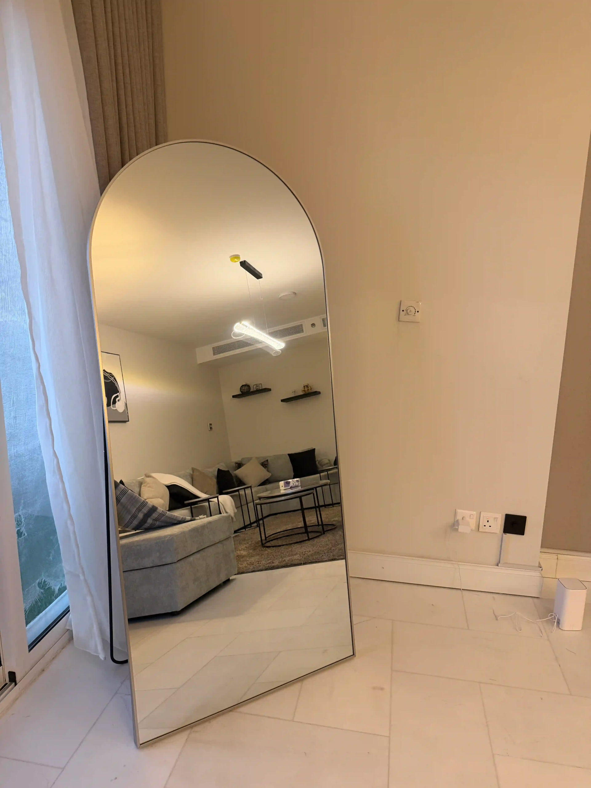 تضم غرفة نوم رئيسية فسيحة بحمام داخلي فاخر بتشطيبات رخامية راقية، وغرفة معيشة بإطلالة مباشرة على الكورنيش