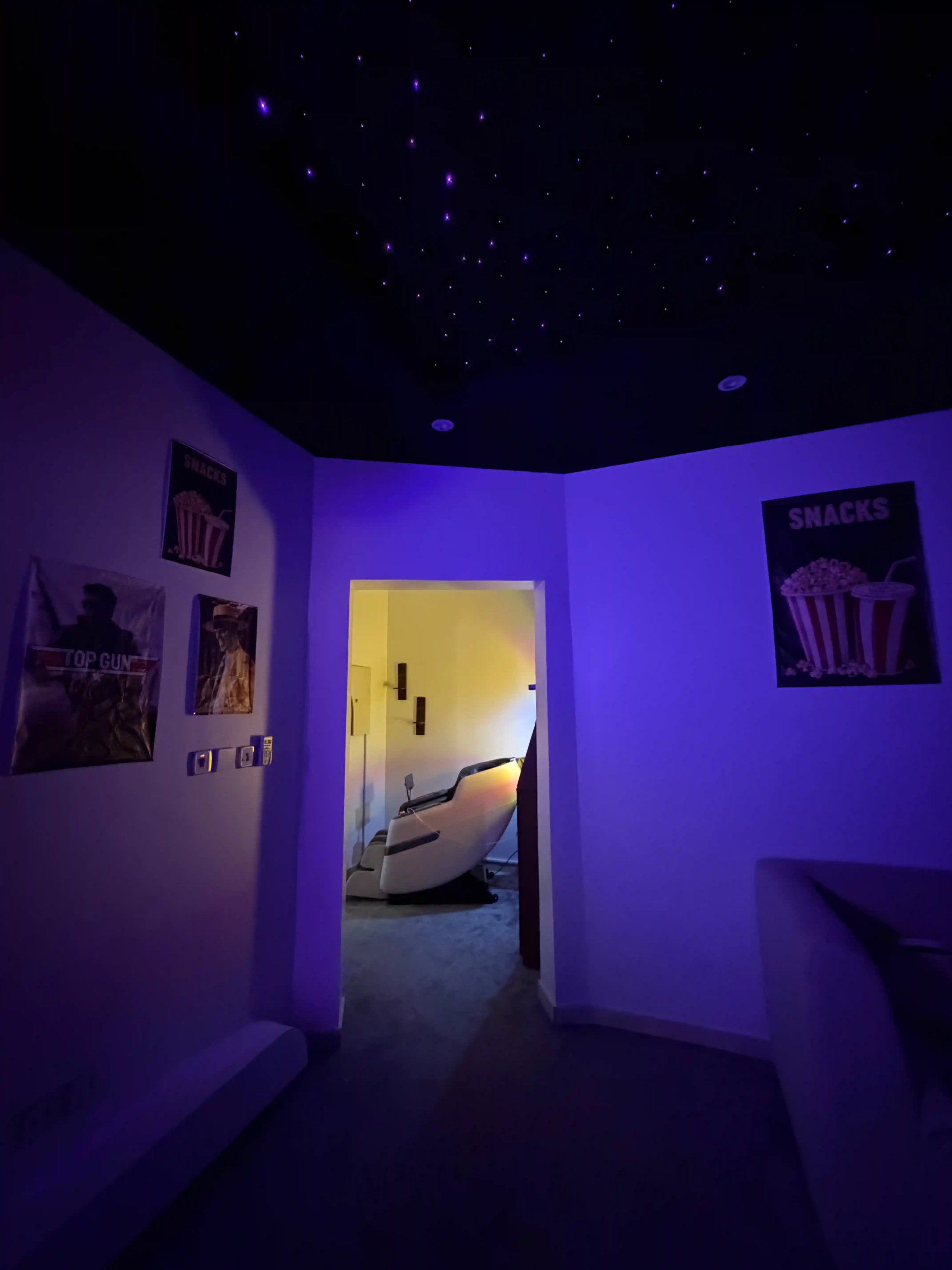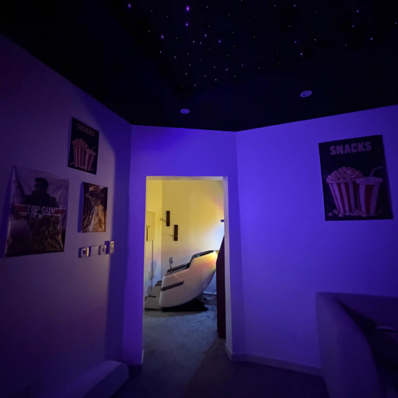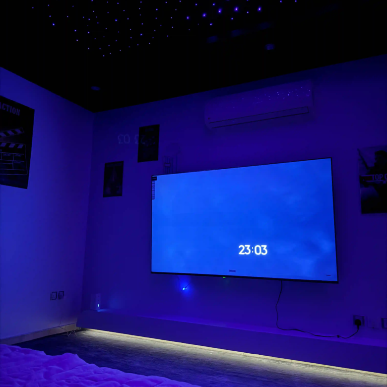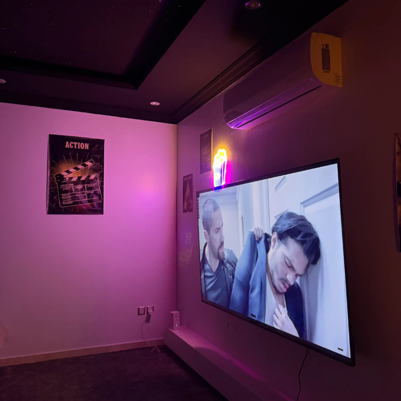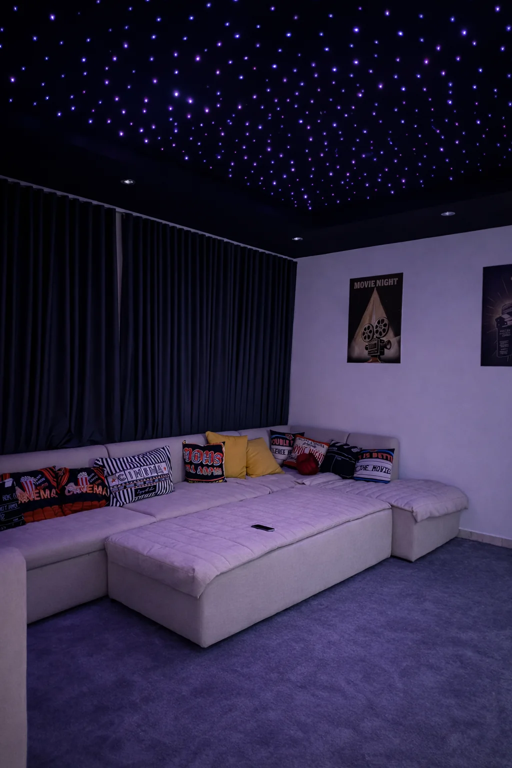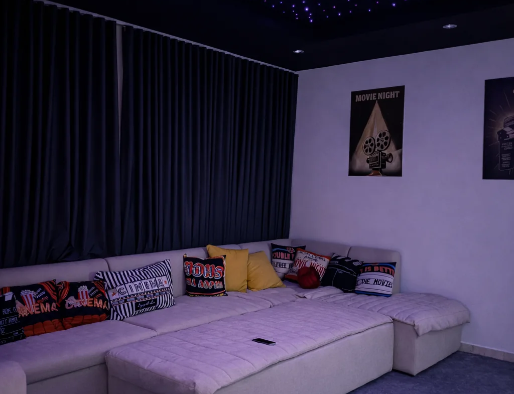 غرفة سينما خاصة مصممة بعناية لعشاق الأفلام، توفر لك تجربة مشاهدة فاخرة