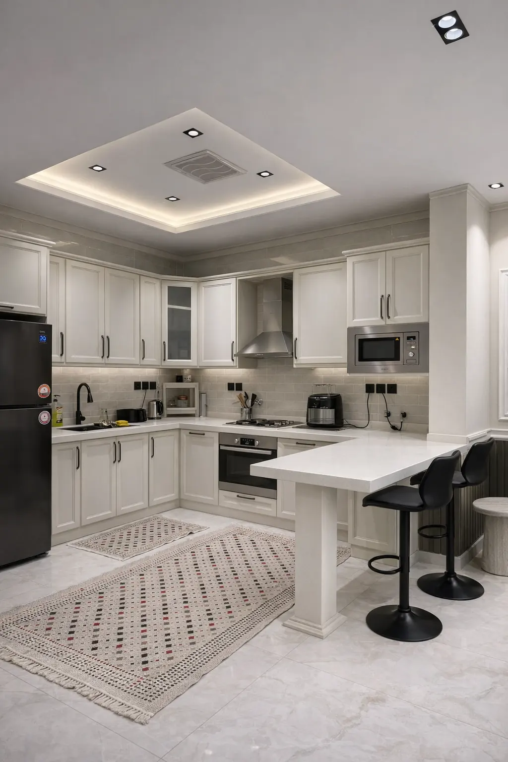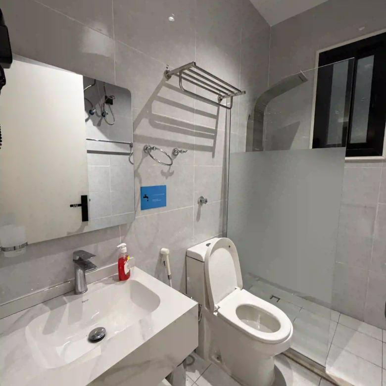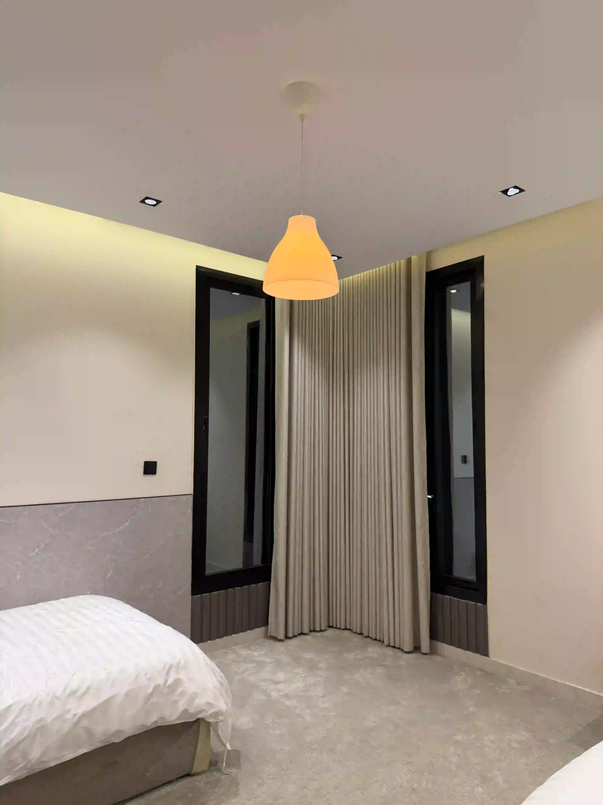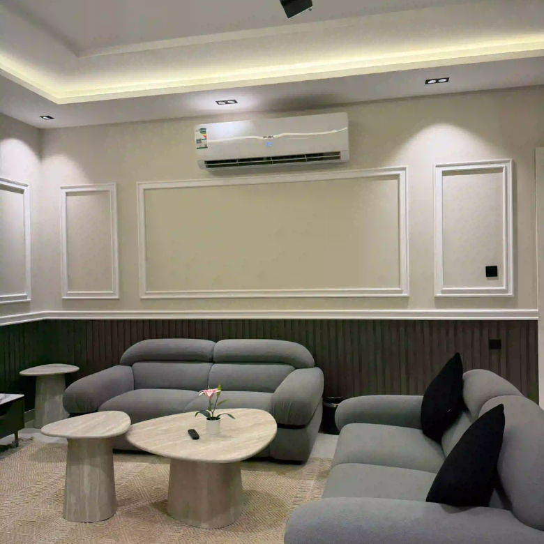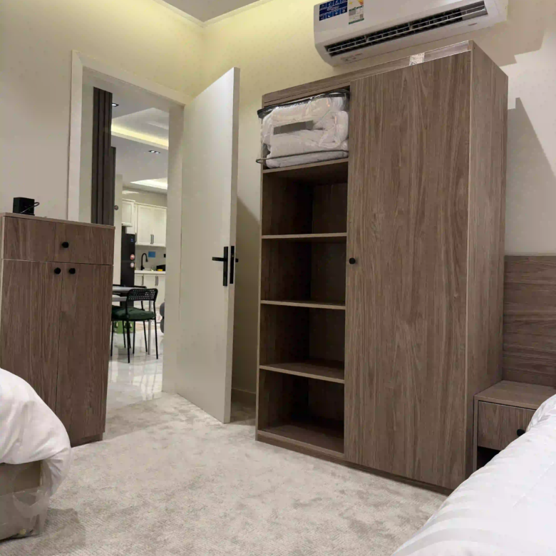 استمتع بإقامة راقية في شقّة لاكجري فاخرة تضم غرفتي نوم أنيقتين مصممتين لراحة وهدوء تام، مع تجربة سينما منزلية مميزة عبر شاشة بروجكتر عالية الجودة لتحظى بأجواء سينمائية خاصة داخل الشقّة.