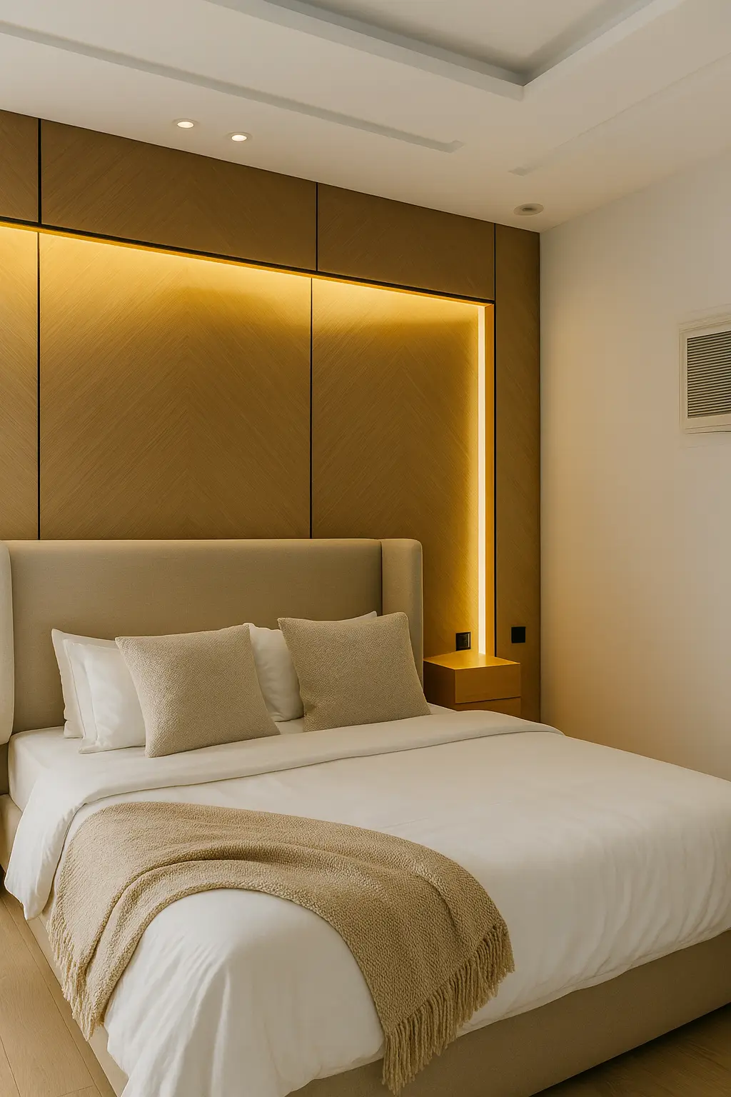 كما تحتوي الشقة على غرفة نوم بسرير ماستر مريح، مع إضاءة جانبية ناعمة وخزائن واسعة تلبّي احتياجات الإقامة اليومية. المجلس الرئيسي مؤثث بذوق عصري ويحتوي على شاشة سمارت متصلة بإنترنت سريع، ما يتيح للضيوف الاستمتاع بتجربة ترفيهية متكاملة